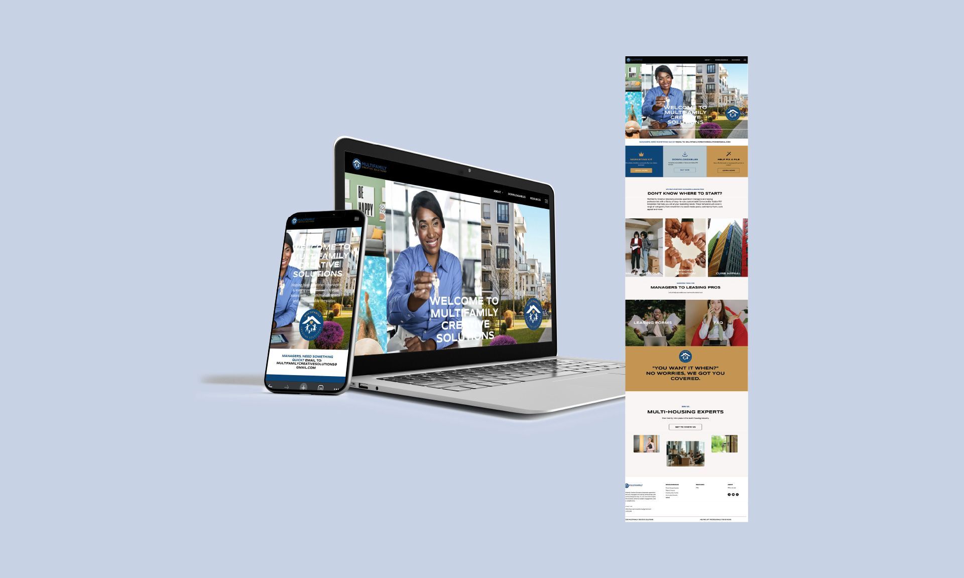 I have designed a series of visually compelling and strategically branded websites for the multifamily housing industry. The Omnia Baseline Apartment Homes Website Design features a clean, modern aesthetic with a focus on showcasing community amenities and floor plans in a user-friendly layout. For the Hillstone Residences at Canyon Trails Website Design, I created a sophisticated and contemporary design that reflects the property's upscale desert-lifestyle branding, using warm tones and elegant visual hierarchy. The Multifamily Creative Solutions Website Design highlights the company’s innovative services with a bold and professional look, incorporating strong brand elements and a clear content structure. Each design was tailored to engage prospective renters or clients, aligning with the unique identity and goals of each property or business.